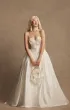 Пышная юбка со шлейфом выполнена из натурального шёлка с внутренними слоями сетки и боковыми фижмами для объёма. По желанию возможны съёмные рукава.
